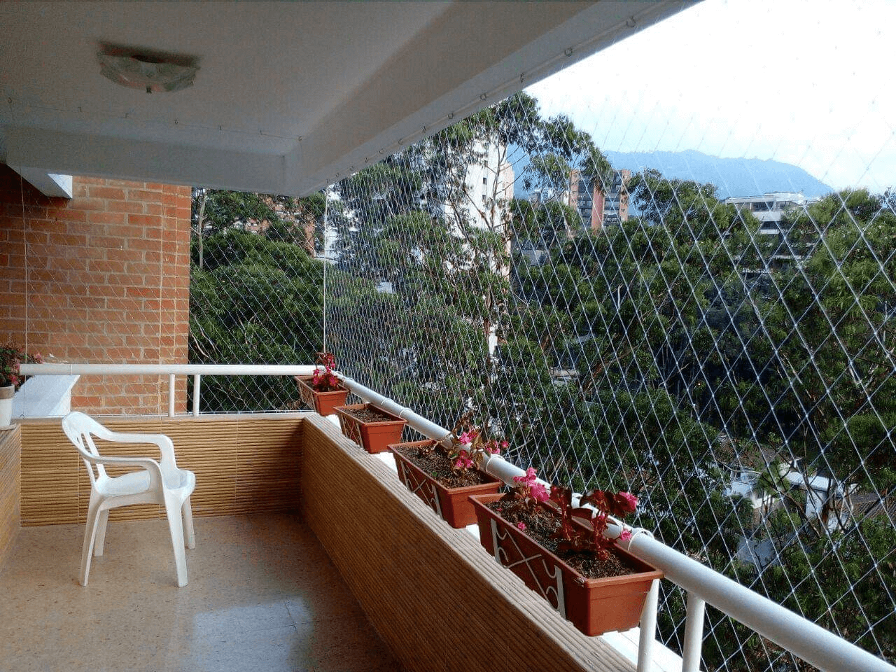 malla monofilamento de nylon con nudo 5×5 instalada en balcón